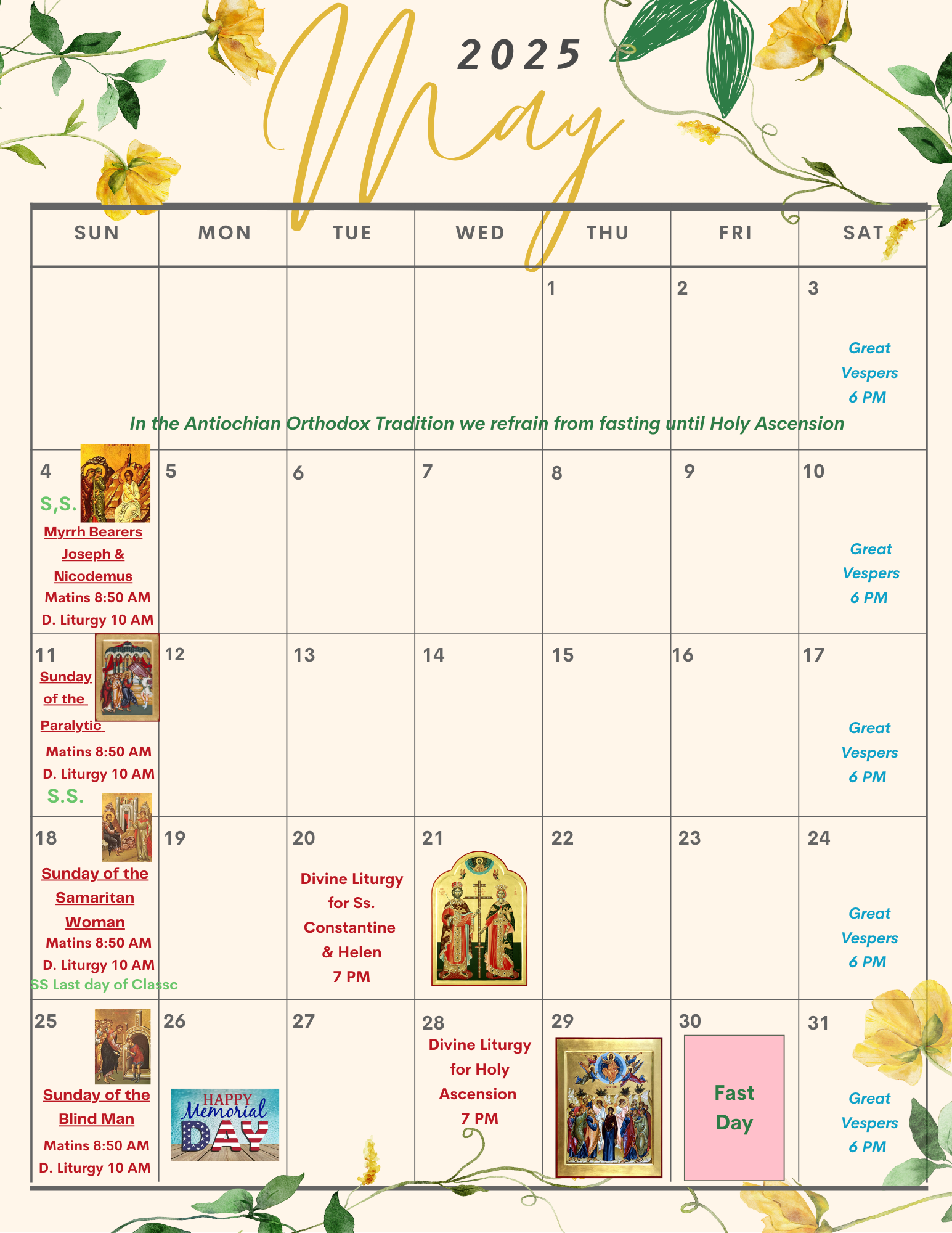 Orthodox Calendar May 2026