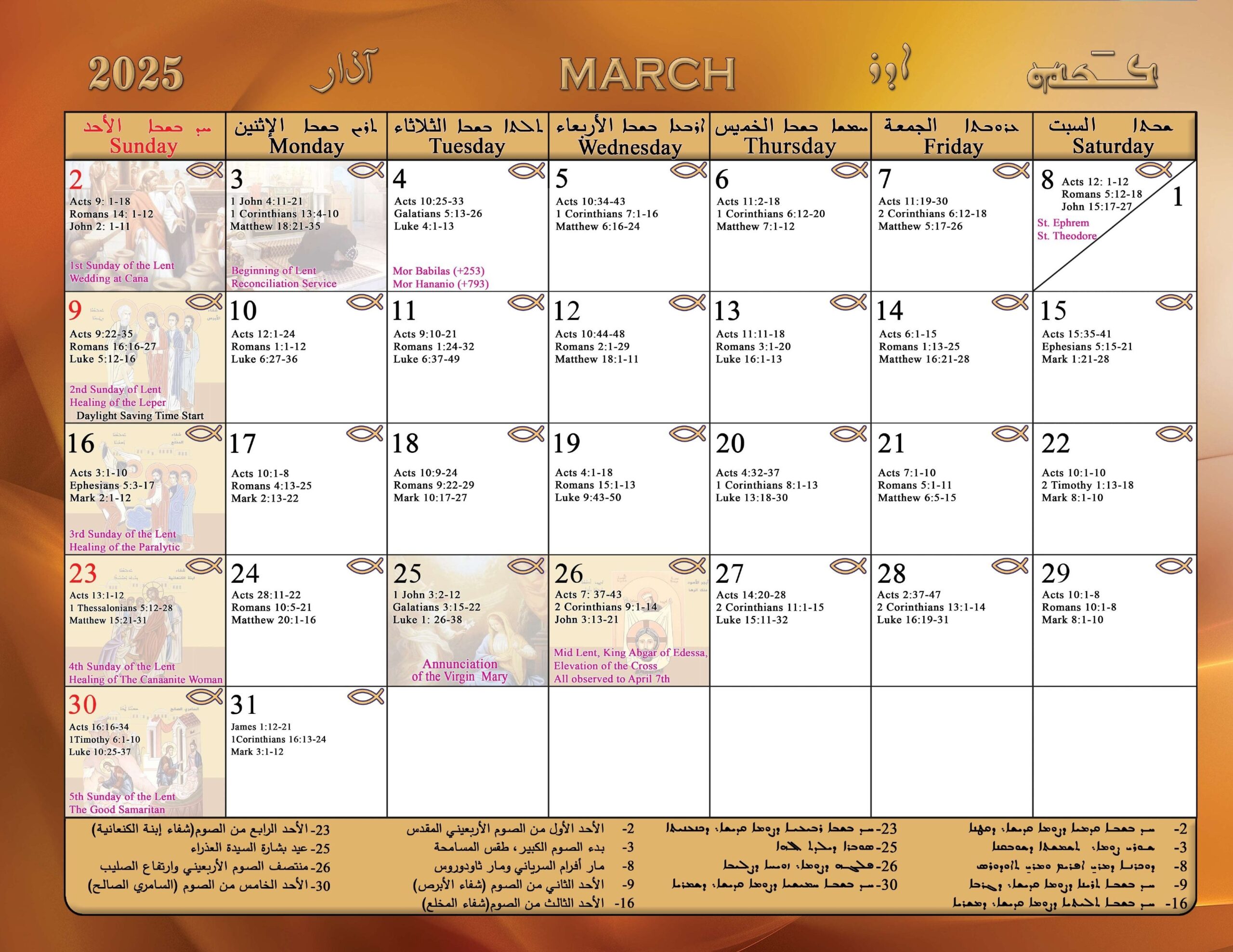 Calendar St Elias Antiochian Orthodox Church