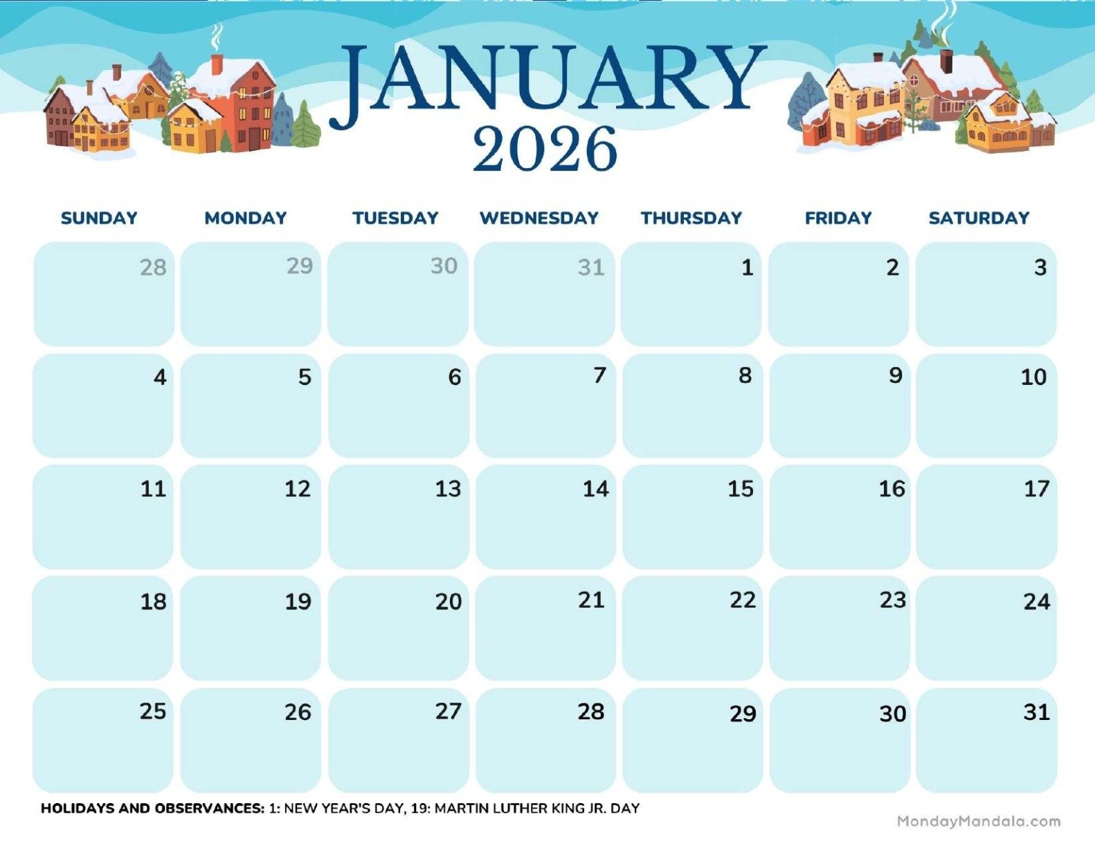 January 2026 Calendars Free PDF Printables