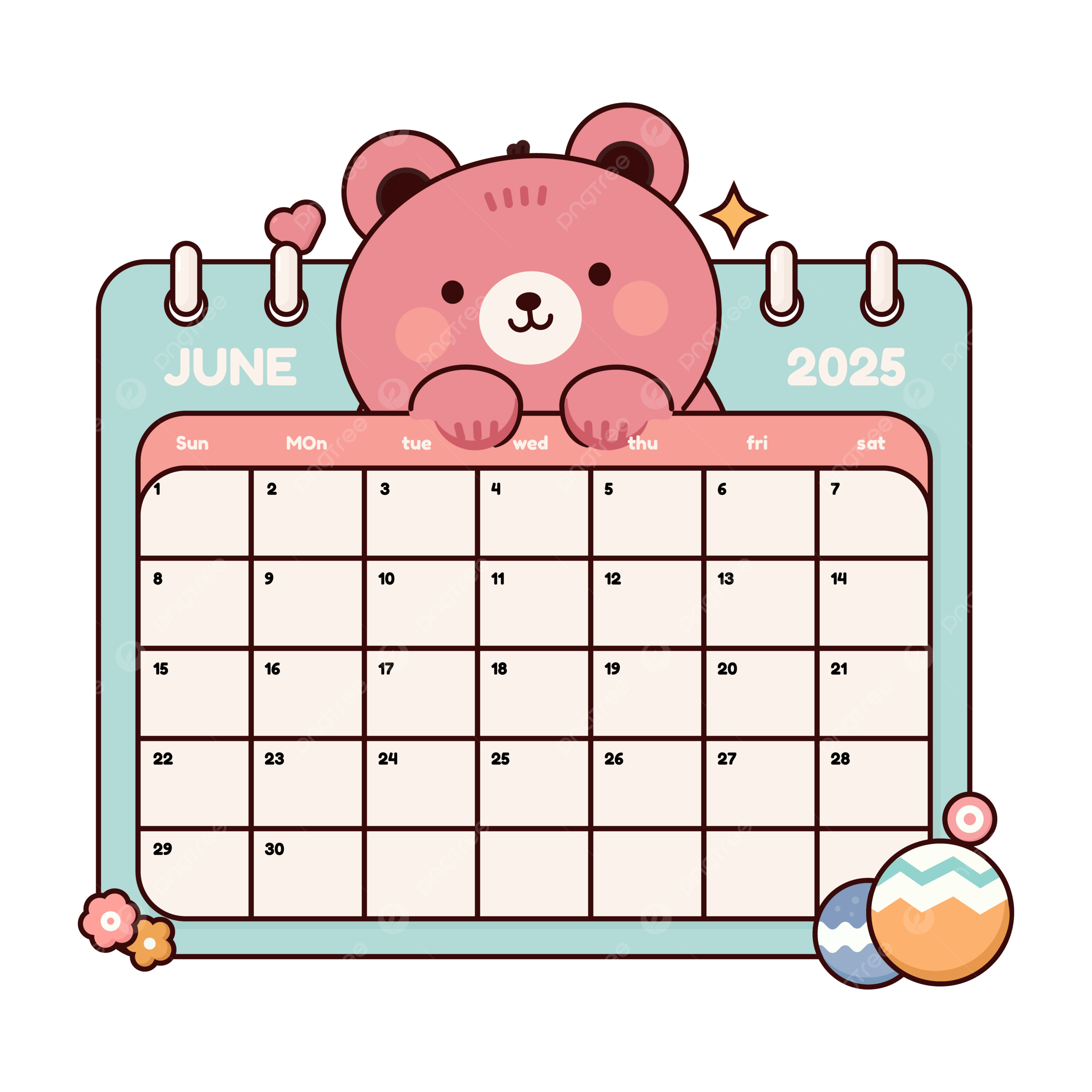 Cute June 2025 Calendar With A Pink Bear Vector Calendar 2025