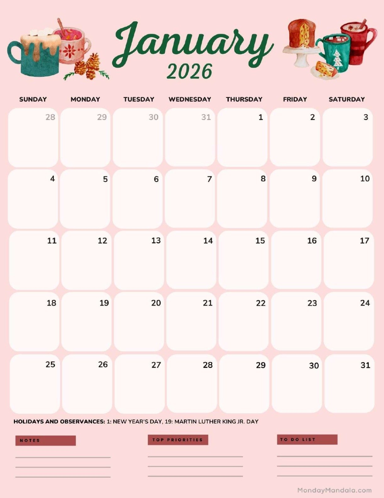 So why wait? Find the perfect Pretty January 2026 Calendar that resonates with you and start planning for a successful and stylish new year ahead!