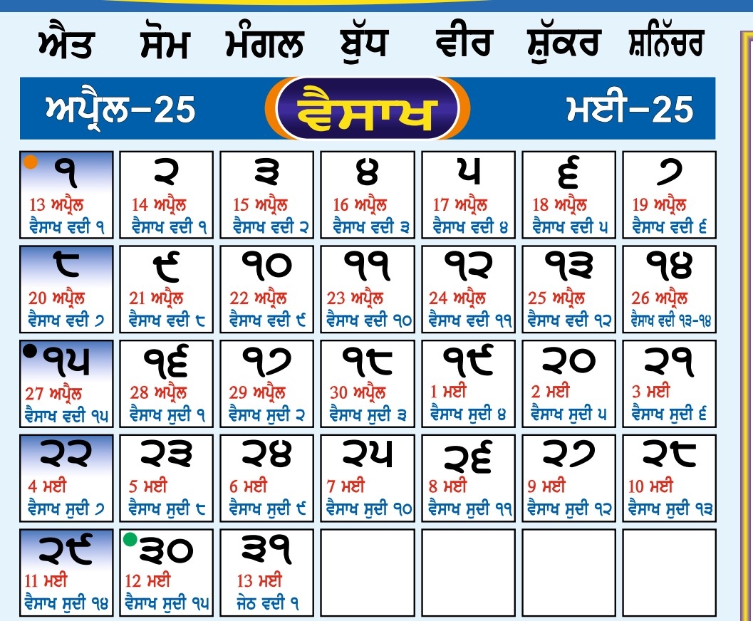 Sikh Calendar Khalsa Heera Jantari Nanakshahi 2025 Punjabi Hindu New Year 25 B44