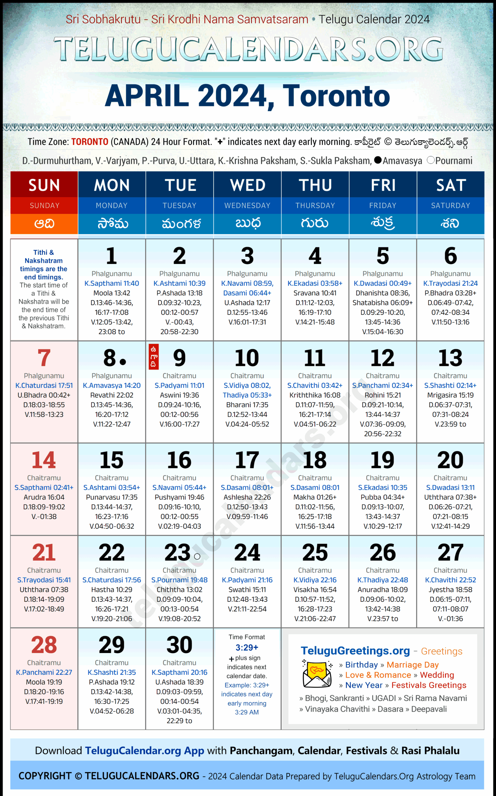 Toronto 2024 April Telugu Calendar Festivals U0026 Holidays In English