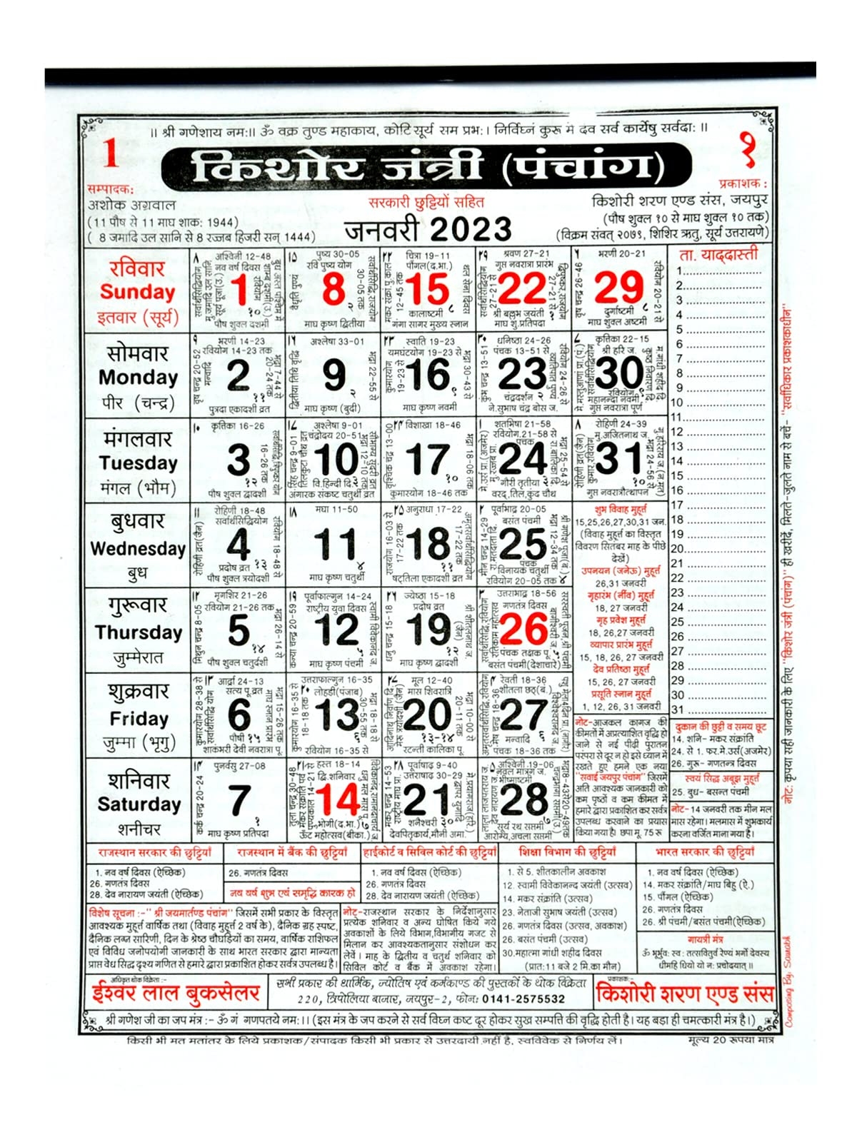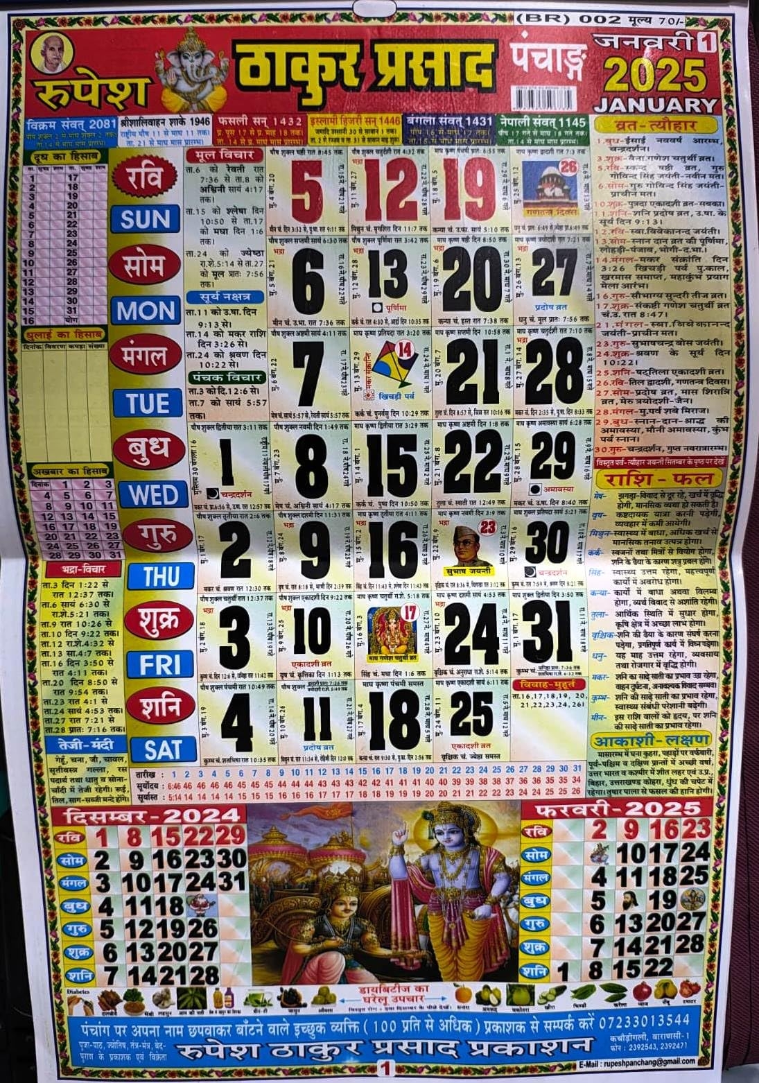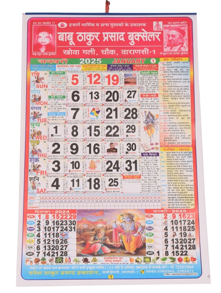 Rupesh Thakur Prasad Panchang 2025 Thakur Prasad Medium Colorful Hindi Panchang Calendar 2025 Amazon in Office Products