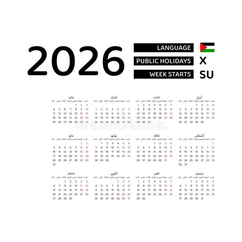 Calendar 2026 Arabic Language With Palestine Public Holidays