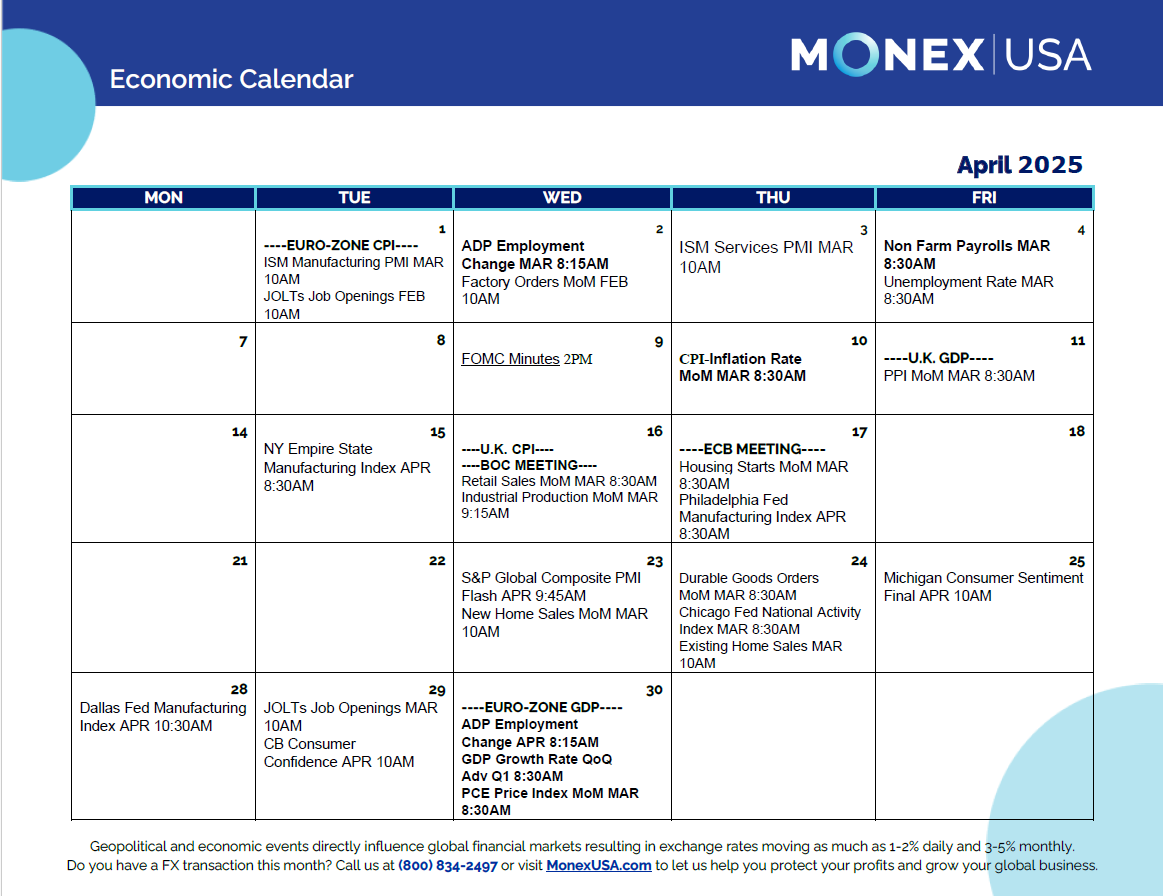 Economic Calendar 2025 Foreign Markets U0026 FX Calendar Monex USA
